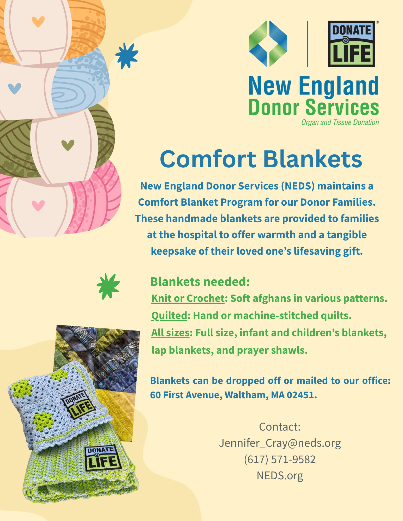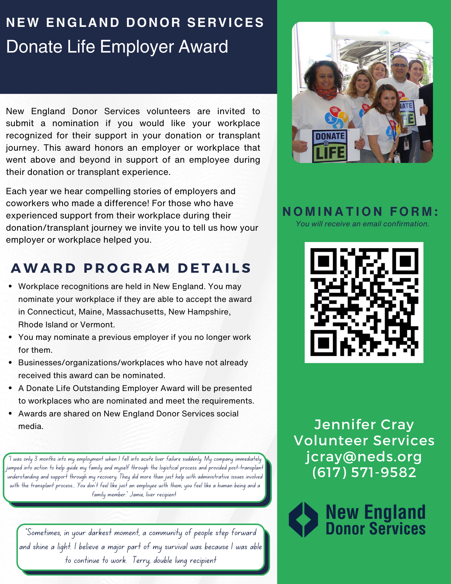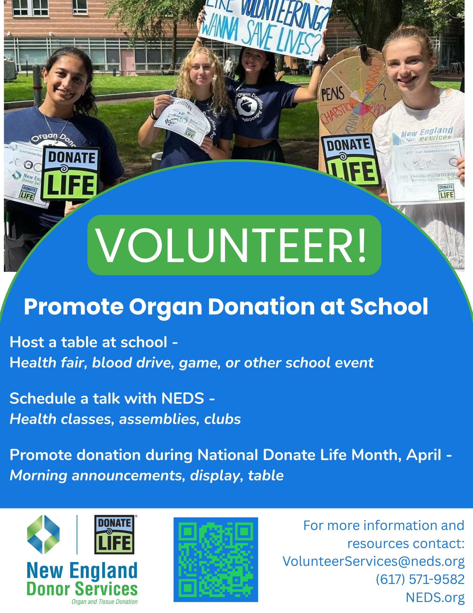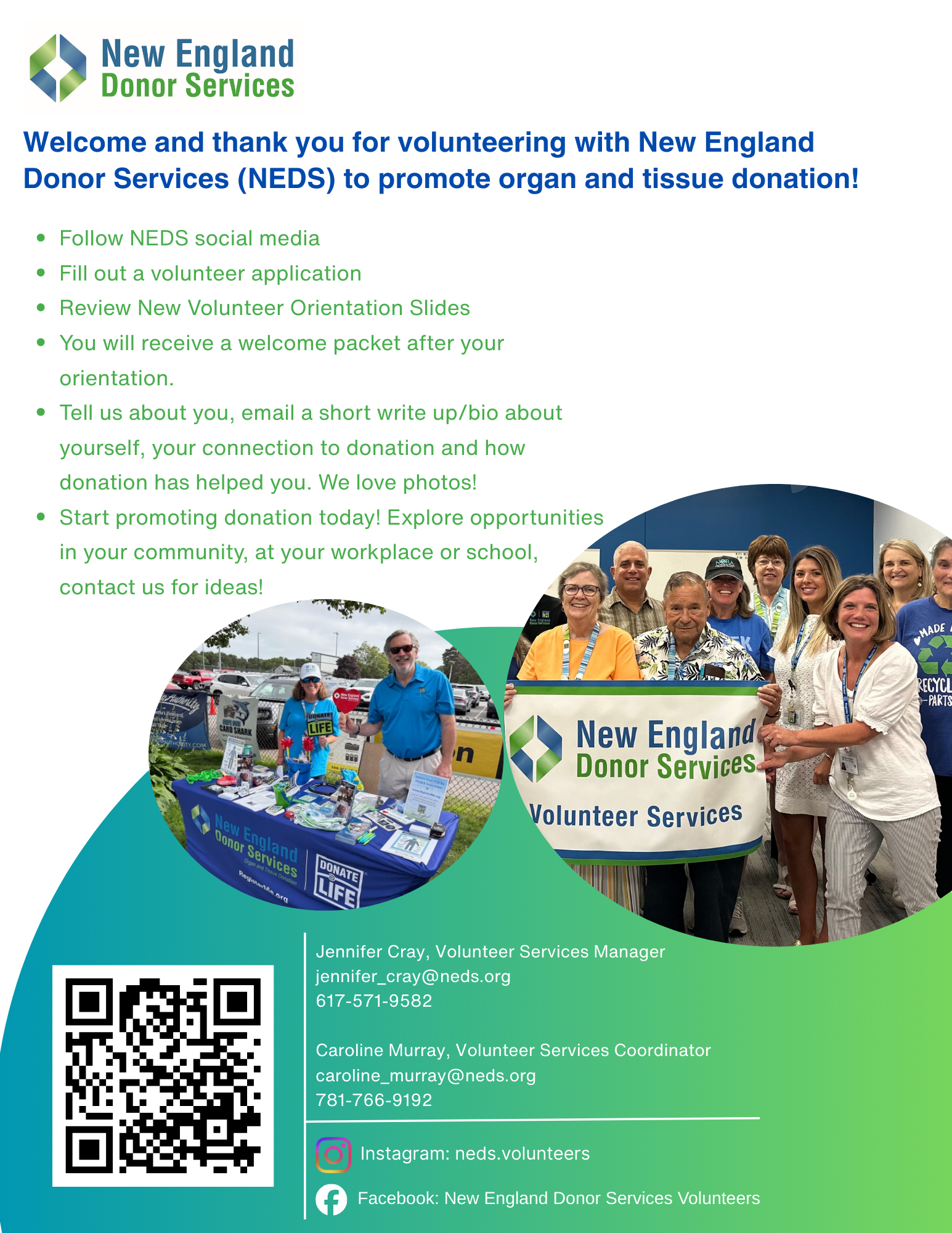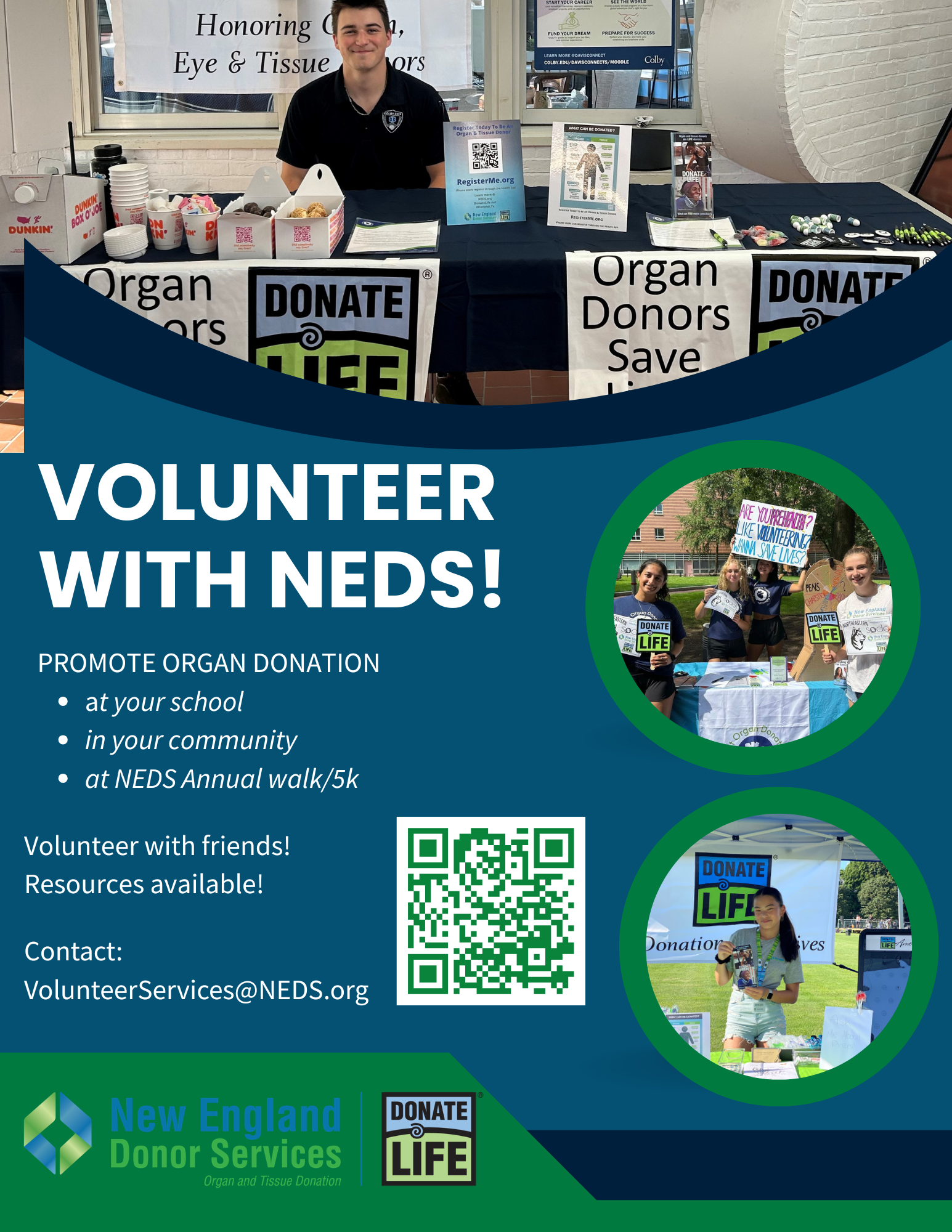 We invite you to read the following documents before attending your first event. The poster can be printed off and displayed at your event or table. Contact our Volunteer Department for more information and materials, volunteerservices@neds.org.