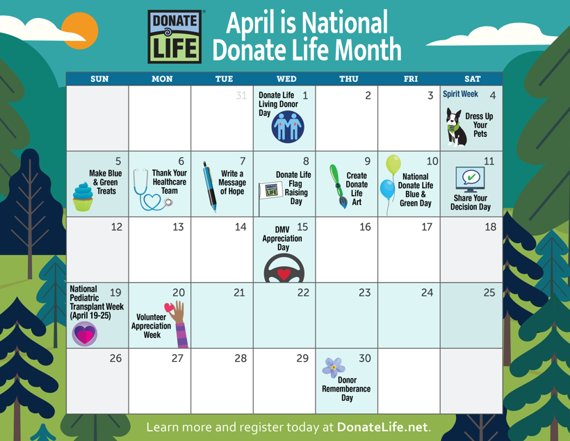 Donate Life Month Activities Calendar